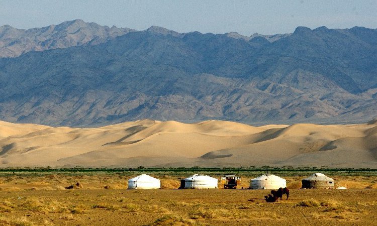 Erst fahren wir nachdem Frühstück in Richtung der Sanddünen "Khongoriin-Els" (ca.140km). Sie geniessen den traumhaften Ausblick auf die goldenen Sanddünen und den Sonnenaufgang in der Wüste Gobi. Wir kommen gegen Mittag in unser Camp. Am Abend klettern wir frisch gestärkt den höchsten Gipfel der Sanddüne Khongoriin els. Die höchste Stelle der Düne heisst Duut Mankhan. Das bedeutet so viel wie „die singende Düne“. Wenn man es nach ganz oben schafft und dann auf dem Rücken liegt, hört man ein harmonisches Geräusch. Der Wind weht in dem von der Sonne stark erhitzten Sand. Von da kommt dieses Geräusch, es wurde Duut Mankhan genannt. Nach einer anspruchvollen Kletterpassage bekommt man ein atemberaubender Blick über die Oase. Optional: Kamelreiten. Übernachtungen im Ger Camp. (F/M/A)